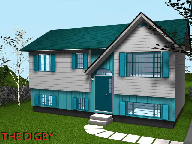 The Digby This attractive 932 sq. ft. (38' x 24.8') split-entry home features a living room, kitchen-eating area, three bedrooms and bathroom. The undeveloped basement area offers other options. The vinyl siding combination makes this selection an intelligent one.