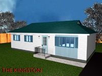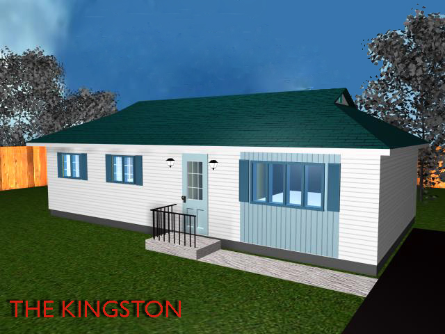The Kingston The Kingston is a 44' x 25' (1100 sq. ft.) bungalow with a well designed floor plan featuring a living room, dining room, kitchen, three bedrooms and bathroom. It also has a medium sized foyer. Vinyl siding makes this an attractive home