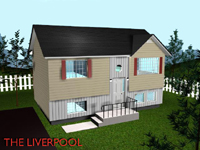 The Liverpool The Liverpool is a 810 sq. ft. (34' x 25') split entry home featuring living room, combined kitchen-dining areas, two bedrooms and bathroom. The full undeveloped basement offers a family expansion opportunities. The horizontal-vertical vinyl siding application gives this home a distinctive look.