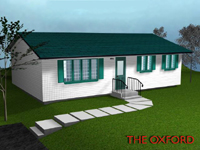 The Oxford The Oxford is a 44' x 25' (1100 sq. ft.) bungalow with a well designed floor plan featuring living room, dining room, kitchen, three bedrooms and bathroom. The home has a full undeveloped basement with exterior vinyl siding.