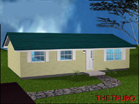 The Truro The Truro is a 38' x 24' (912 sq. ft.) bungalow offering a living room, combined kitchen-eating area, three bedrooms and bathroom. It has a full undeveloped basement offering lots of extra storage area. The vinyl siding gives This home an attractive look.